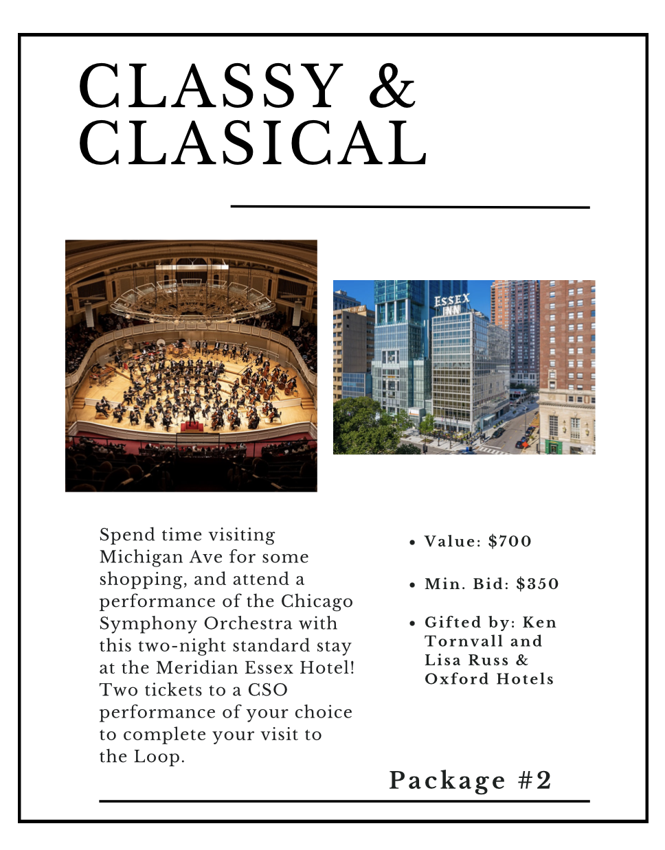Spend time visiting Michigan Ave. for some shopping, and attend a performance of the Chicago Symphony Orchestra with this two-night standard stay at the Meridian Essex Hotel! Two tickets to a CSO performance of your choice complete your visit to the Loop.