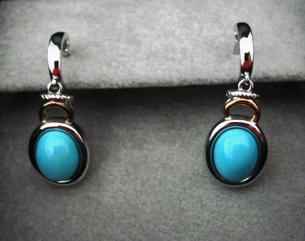 Stunning sterling silver, 18kt turquoise drop earrings for pierced ears, courtesy of Lambrecht Jewelers in Wilmette. Post style with backing. Feel glamorous and virtuous at the same time!