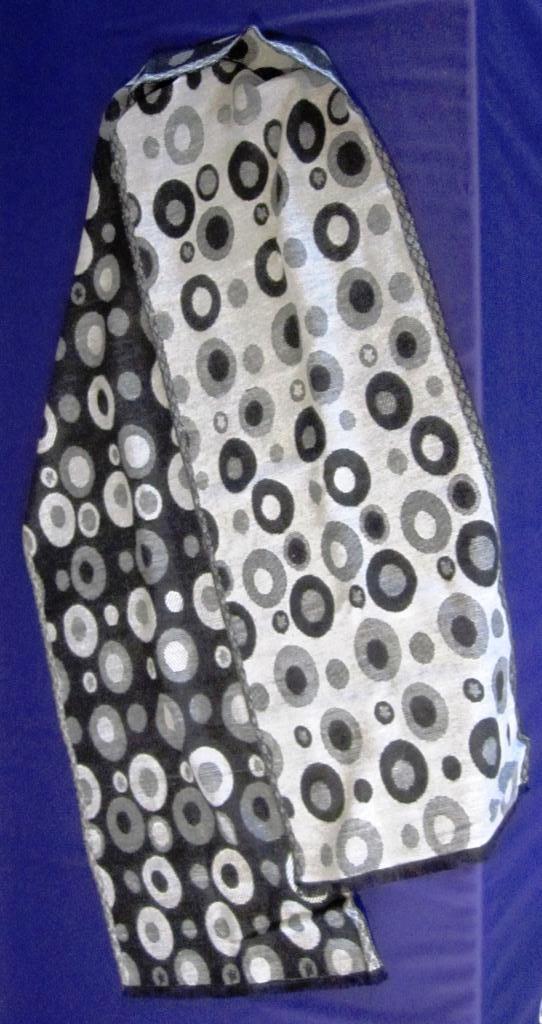 From Lois and Co., a black and gray reversible cashmere scarf. 60" by 12". Soft as a whisper. Abstract pattern, some irregularities.
