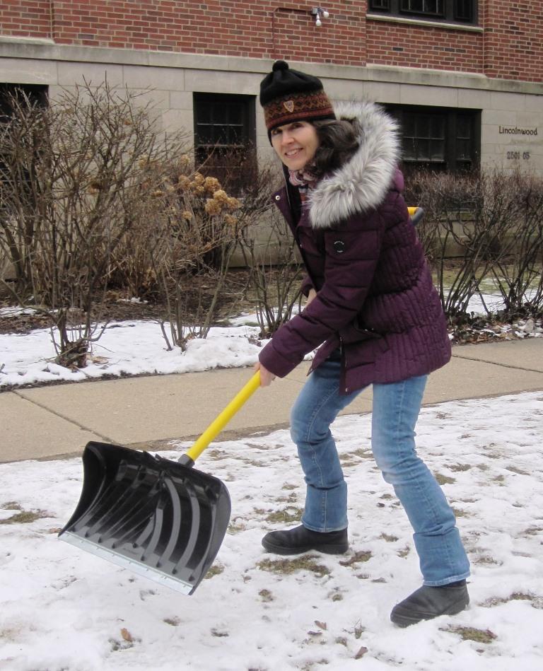 Clean up your act with this extra-wide Fibercore snow shovel from Harold's Hardware. With this at your side, you will laugh (ha ha!) in the face of Chicago winters. Elbow grease required. Shoveling woman not included.