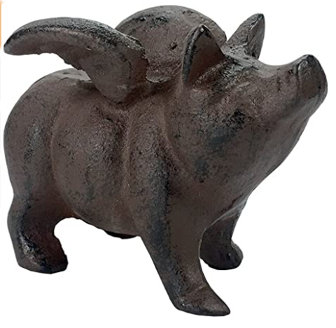 A grandson of Pigasus has returned once again to help our fundraising! Jacques Pierre Pigasus has been spending the last year in Antarctica, researching the impact of climate change on the ice shelves. For him, our current weather is a pleasant spring day! Perhaps you can take him out to dinner with this $25 gift certificate to the Peckish Pig, included in this package. This cast iron cutie measures 3.25" by 2" by 2.75".